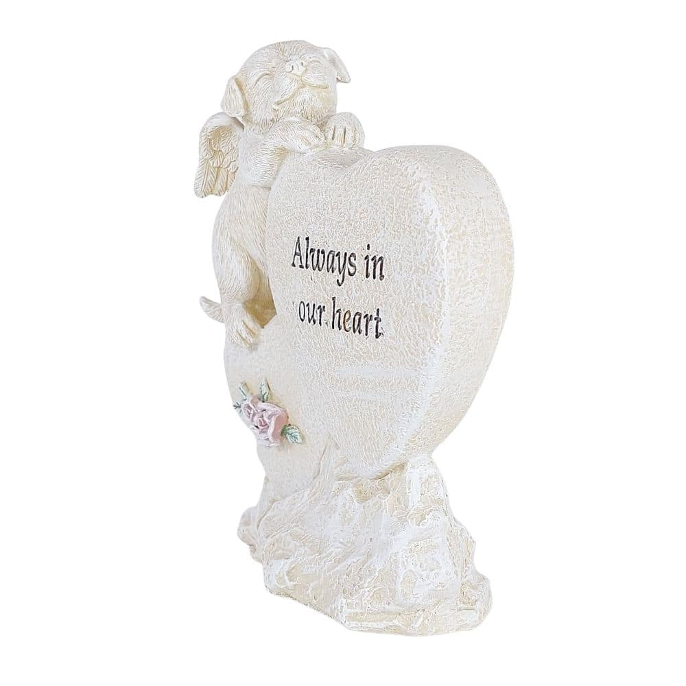 Remember your beloved canine with this sentimental polyresin cream stone look Always In Our My Heart memorial figurine. A loving reminder of a wonderful companion.
