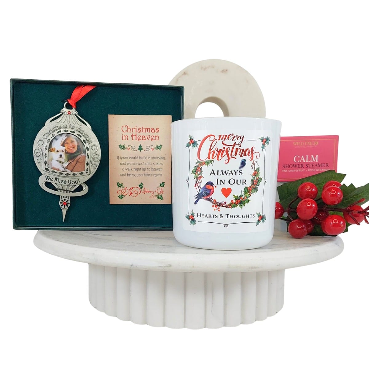 The Forever In Our Hearts Christmas Hamper was thoughtfully created to support those grieving through the festive season. Every item has been chosen to bring quiet comfort — a candle to remember, a keepsake to treasure, and a soothing shower steamer to nurture self-care.