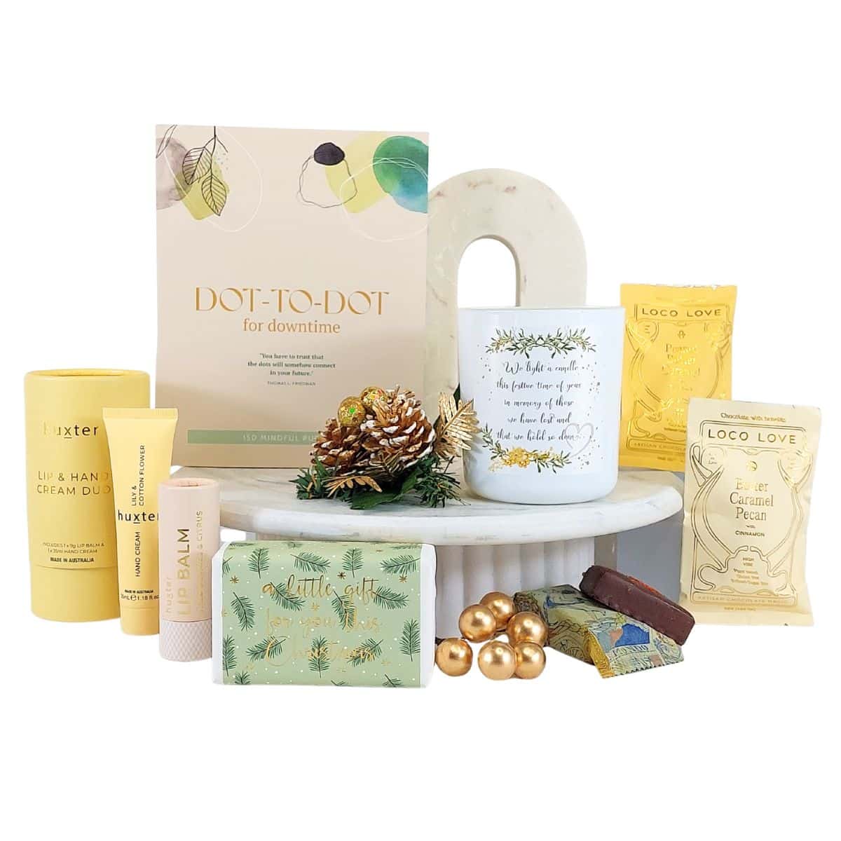 The In Memory Christmas Sympathy Hamper is designed to gently support someone experiencing loss during the festive season. Combining heartfelt remembrance with moments of self-care, it offers both emotional warmth and physical comfort. Each item has been chosen to help your recipient slow down, reflect, and find peace in small, comforting rituals.