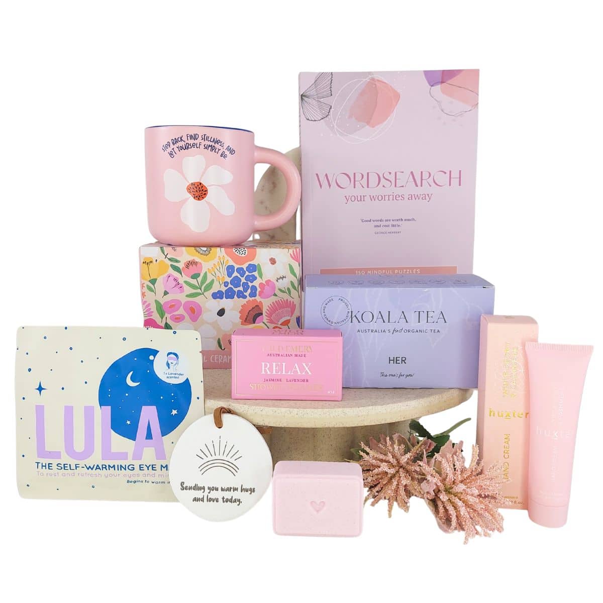 From herbal tea and aromatherapy to soothing skincare and mindfulness puzzles, every item contributes to a holistic self-care experience.