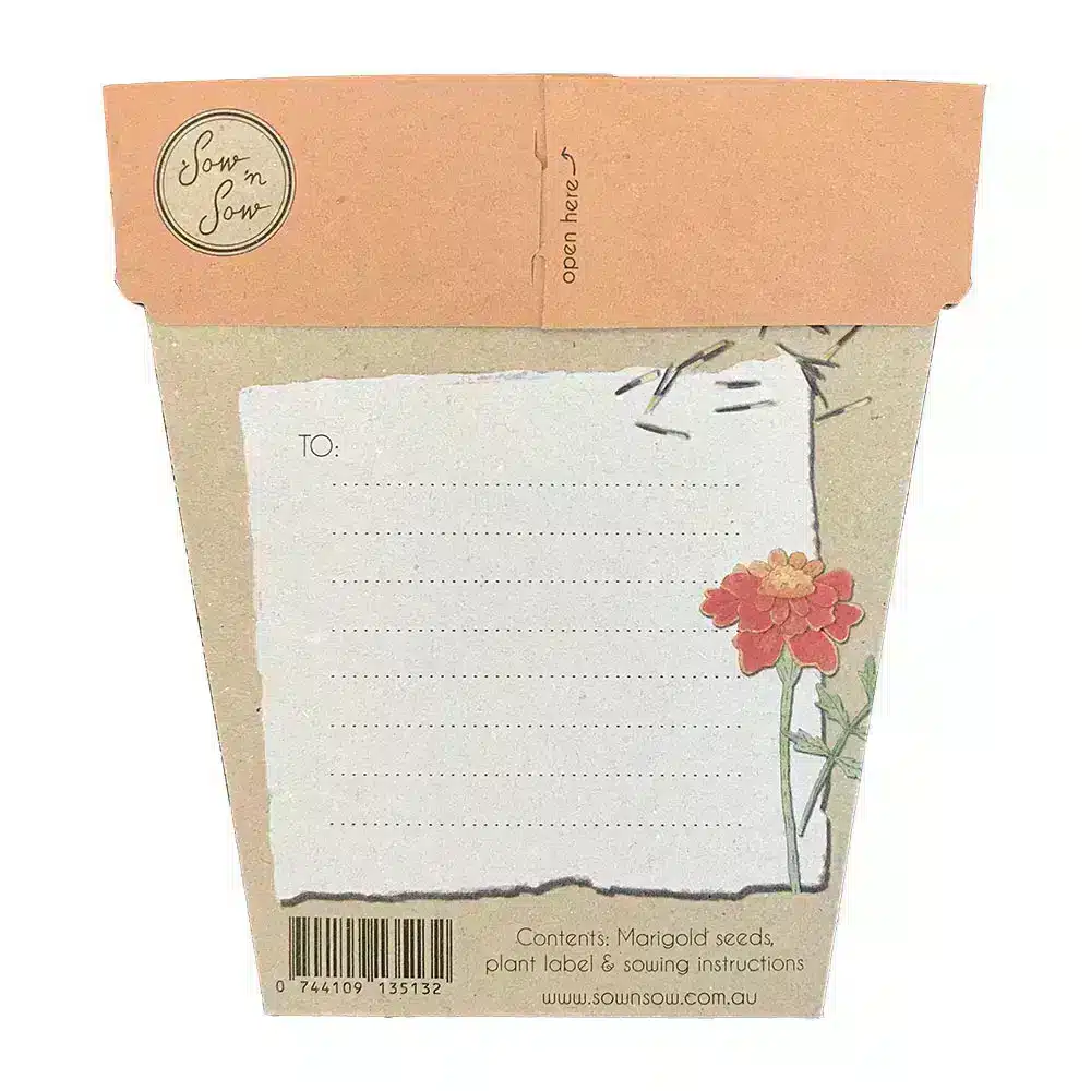 Marigold Seeds Gift Packet. Marigolds are ever-popular and extremely easy to grow so this gift will serve as a lasting reminder of your support and caring. Marigolds symbolize positive emotions and energy.