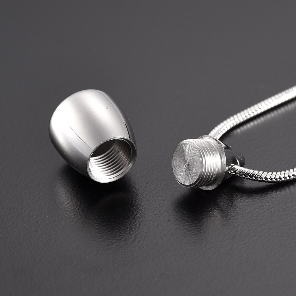 The silver flat bottom teardrop cremation jewellery pendant can hold any small memorial you choose that is special to you. Urn jewellery is designed to hold a very small (nominal) portion of cremation ashes or another filling.