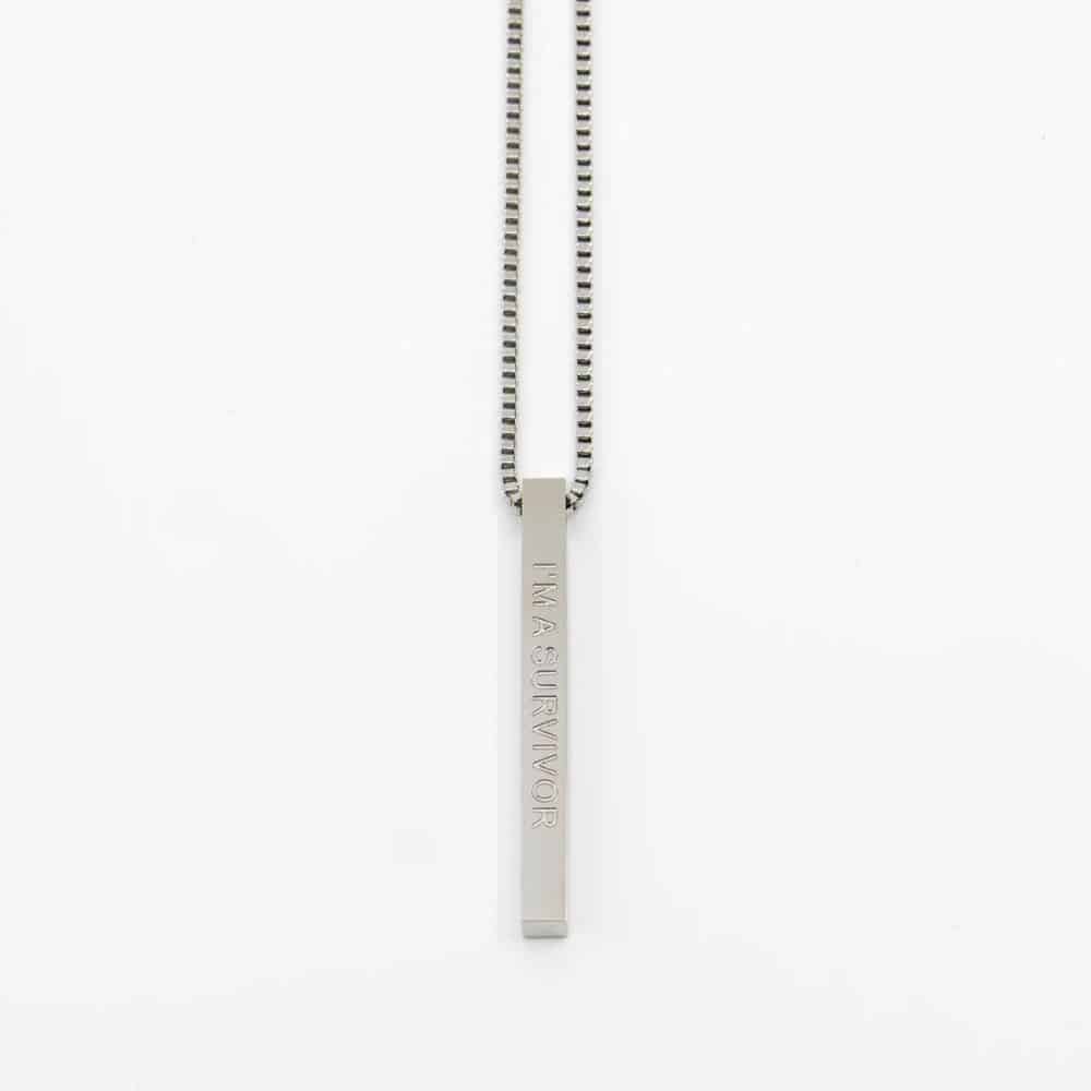 Pendant size: 4mm x 40mm. Includes a 50cm box chain and gift box. Hypoallergenic and comfortable to wear.